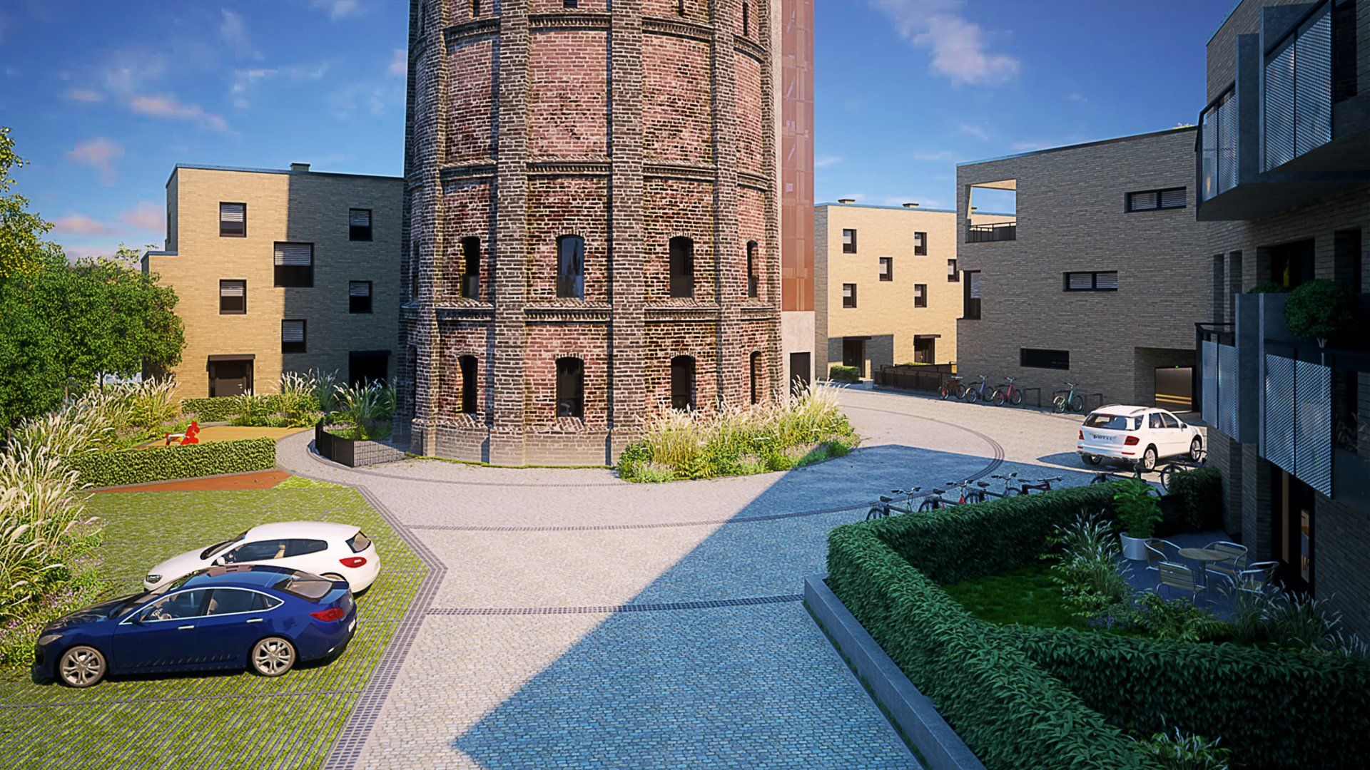 "Cologne Project I" is a closed area (safe community) with a historic water tower (monument from 1881) in the direct vicinity of Cologne-Stammheim on the Rhine. The concept provides for sophisticated living for all generations in a safe living space.